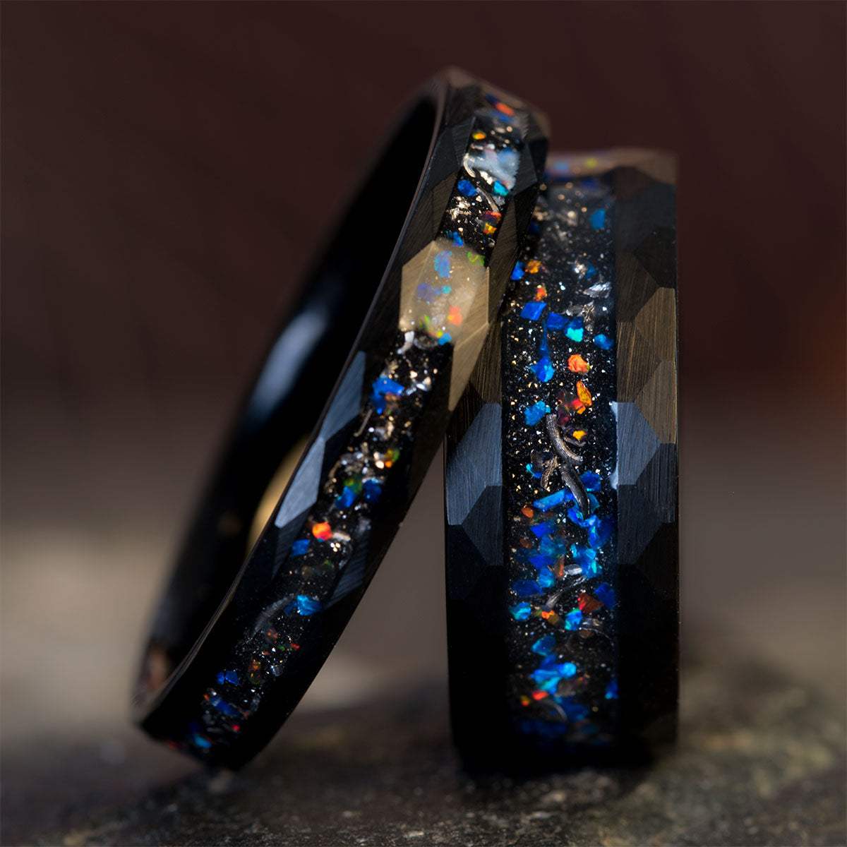 True fragments of space, sourced for their natural cosmic patterns — no two rings are ever the same.