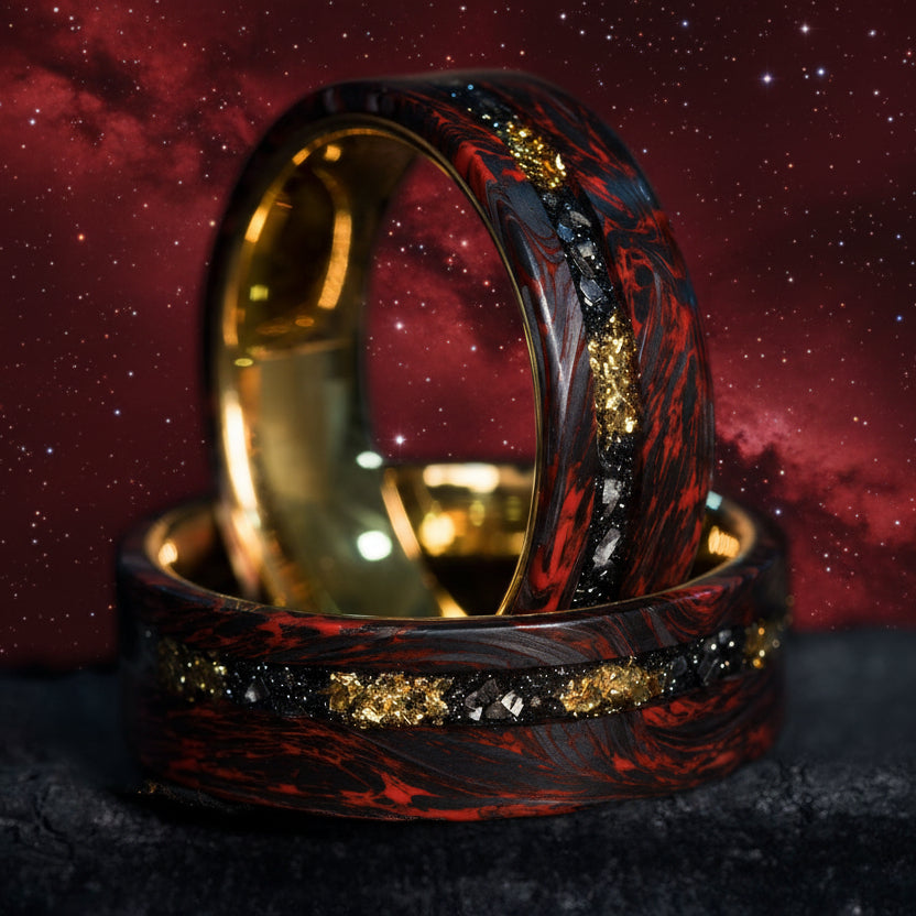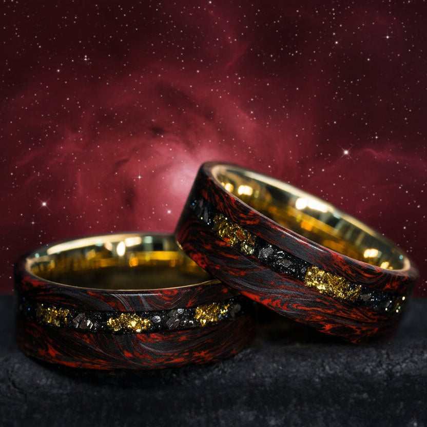 Forged Carbon Fiber Ring With 22K Gold Leaf & Meteorite